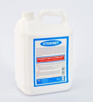 Sterinet is a highly effective broad-spectrum bacteria, yeast and viruses and is a non-staining sterilant and disinfectant. Sterinet disinfectant & sterilizer is completely mixable with water and dilutable in up to 1 part to 20 parts of water.