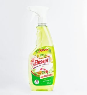 Elesept air freshener/anti-bacterial is a broad-spectrum, fast-acting bactericide for general disinfection broad-spectrum, fast-acting bactericide for the general disinfection of homes, offices, hospitals, gyms, toilet seats, sinks, bathrooms,s etc. It is formulated for use with hand-triggered spray bottles and is safe to use on all types of hard surfaces.